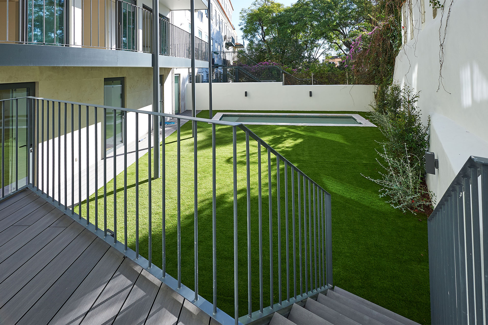 Adaptação e ampliação de uma casa senhorial no centro do típico e exclusivo bairro da Lapa e conversão num prédio multifamiliar de 4 apartamentos superiores, com garagem, jardins ou terraços e vistas francas de rio.
